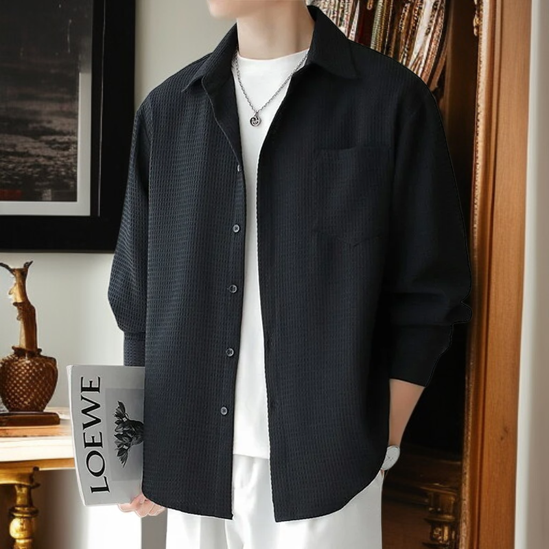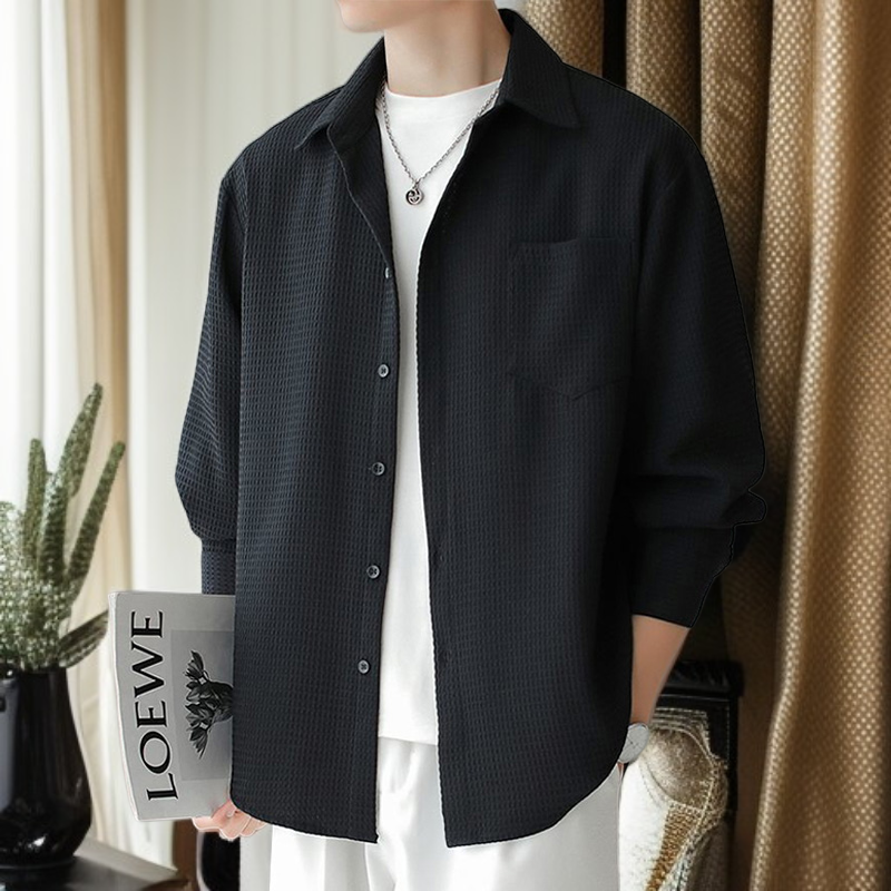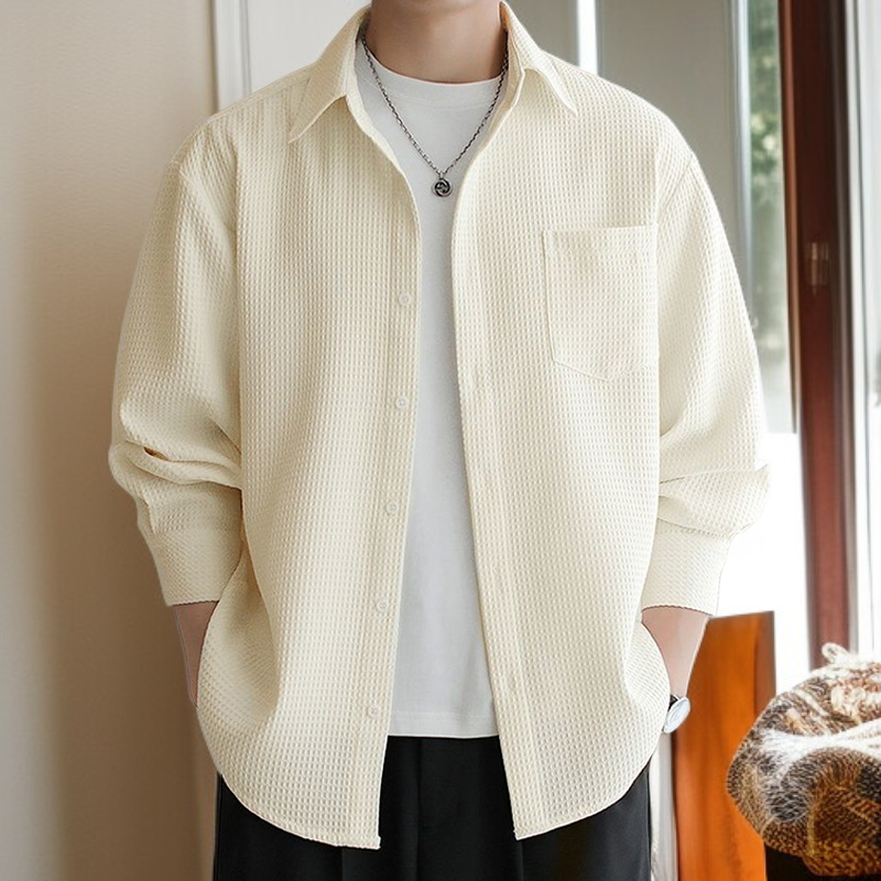 メンズ長袖ワッフルルーズフィットシャツ